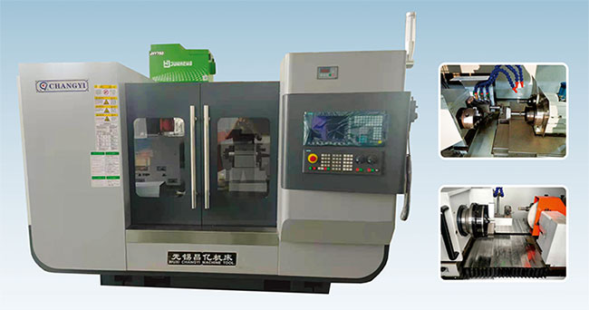 ★ 本機(jī)床為三軸(X進(jìn)給、Z1砂輪、Z2砂輪軸)二聯(lián)動(dòng)數(shù)控復(fù)合磨床,主要用于磨削工件的內(nèi)圓孔、內(nèi)錐孔、臺(tái)階孔、內(nèi)端面、外圓、外端面。磨削循環(huán)均自動(dòng)完成(具有自動(dòng)進(jìn)刀、退刀、粗磨、精磨;自動(dòng)修正砂輪、自動(dòng)補(bǔ)償?shù)裙δ埽?BR>★ 機(jī)床采用工件進(jìn)給,工作臺(tái)(砂輪架)左右運(yùn)動(dòng)的結(jié)構(gòu)方式,工作臺(tái)及砂輪架導(dǎo)軌均為滾動(dòng)直線導(dǎo)軌,均由伺服電機(jī)驅(qū)動(dòng)滾珠絲杠運(yùn)動(dòng),工件主軸及砂輪主軸旋轉(zhuǎn)速度均由變頻器控制,實(shí)現(xiàn)無級調(diào)速。工件夾緊為液壓動(dòng)力卡盤,同時(shí)可以根據(jù)用戶工件的特殊性配置其它相匹配的夾具。 ★ 機(jī)床為全封閉防護(hù)罩殼,前置回轉(zhuǎn)式操作箱、后置背包式電器柜。